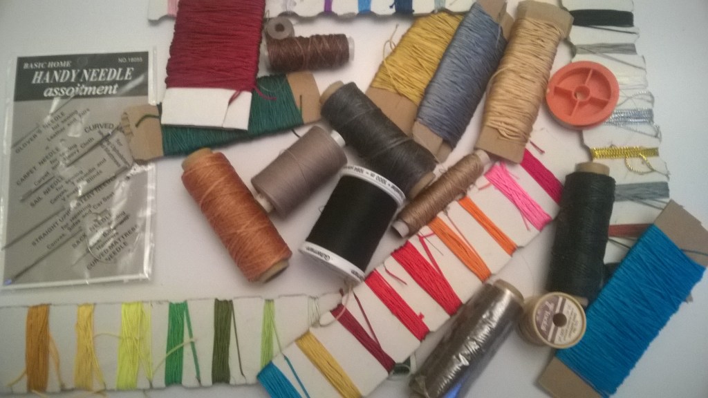 - Some needles. These will need to be the heavier type than normal sewing needles. Standard sizes ‘eyes’ will not allow thicker thread through nor withstand the rigours of being pushed through leather. A couple of quid online.