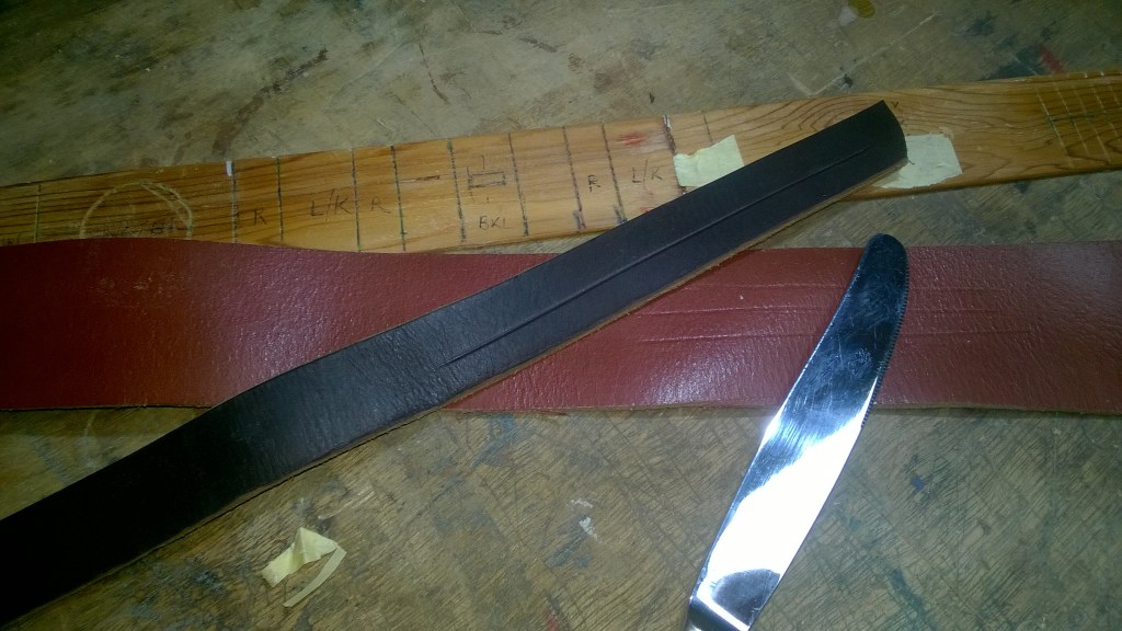 Let’s run through the latter option to cover all possibilities. Cut to size or thin first? Thinning the whole belt is a lot of work if you only want one blank to experiment with – so cutting is best.